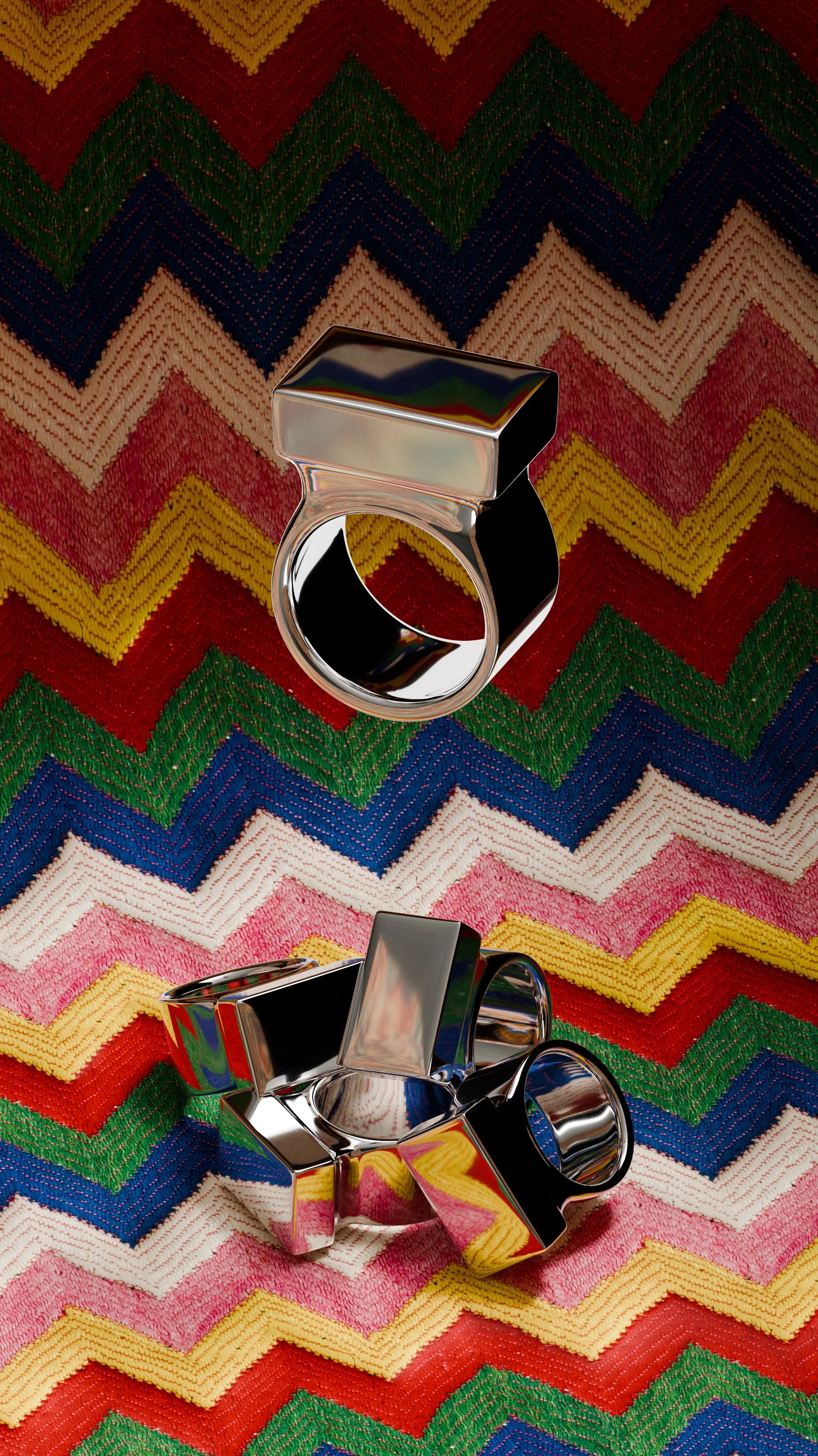 This project led me to design two rings in polished silver : one with a rather rectangular silhouette, and the other with more classic shapes, enriched by an organic touch.